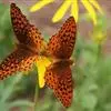 射干 Redouté)是鸢尾科射干属多年生草本植物。根状茎为不规则的块状,斜黄色或黄褐色;花橙红色,散生紫褐色的斑点;花药呈条形;子房下位,倒卵形;蒴果倒卵形或长椭圆形;种子圆球形,黑紫色,有光泽。…全部>>