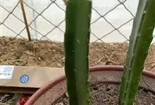 量天尺 Britton & Rose),是仙人掌科蛇鞭柱属的攀援肉质灌木,别名火龙果、三角柱、三棱箭、霸王鞭等。茎粗壮,有常呈翅状的棱,深绿色至淡蓝绿色;小窠沿棱排列,有硬刺。花漏斗状,瓣状花被片白色。…全部>>