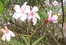 夹竹桃,又名红花夹竹桃、欧洲夹竹桃,是夹竹桃科夹竹桃属的一种常绿直立大灌木,枝条灰绿色,含水液。叶披针形,3叶轮生。聚伞花序顶生,花冠粉红至深红色,花冠漏斗状,有特殊香味。蓇葖果,圆柱形。种子长圆形,…全部>>