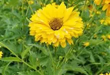 赛菊芋是菊科赛菊芋属多年生草本植物。多分枝;叶对生,长卵圆形,先端圆钝,基部楔形,具长柄,边缘具锯齿,叶面粗糙;头状花序集成伞房状花序;花为黄色;花期夏季;因其外形酷似菊芋,并归类为菊科而得名。…全部>>