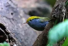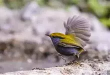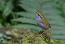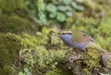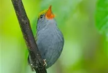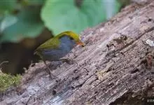 金冠地莺:形态与灰腹地莺相似,上体橄榄绿,前额至头顶渲染亮金黄色;下体几乎纯暗石板灰色,下嘴基部橙红色或橙黄色。虹膜褐色;上嘴角褐色,下嘴基部橙红色或深橙黄色直至嘴尖;跗跖和趾褐色,爪褐色。…全部>>