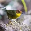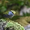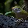 金冠地莺:形态与灰腹地莺相似,上体橄榄绿,前额至头顶渲染亮金黄色;下体几乎纯暗石板灰色,下嘴基部橙红色或橙黄色。虹膜褐色;上嘴角褐色,下嘴基部橙红色或深橙黄色直至嘴尖;跗跖和趾褐色,爪褐色。…全部>>
