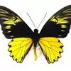 金裳凤蝶是凤蝶科、裳凤蝶属的动物。金裳凤蝶身体呈黑色,头、颈和胸侧有红毛,腹部有黑黄两色相间条纹,雄蝶前翅黑色,具黑天鹅绒光泽,各脉两侧灰白色,后翅金黄色,各室外缘有等腰三角形黑斑1枚,斑内侧有晕,…全部>>