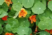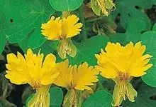 旱金莲是旱金莲科旱金莲属蔓生一年生草本植物。叶互生,叶柄向上扭曲,盾状,叶圆形,具波状浅缺刻,下面疏被毛或有乳点;花黄、紫、桔红或杂色,花托杯状,花瓣为圆形,边缘具缺刻;果实为扁球形;花果期6-10月,…全部>>