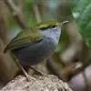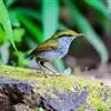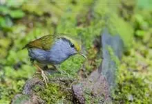 金冠地莺:形态与灰腹地莺相似,上体橄榄绿,前额至头顶渲染亮金黄色;下体几乎纯暗石板灰色,下嘴基部橙红色或橙黄色。虹膜褐色;上嘴角褐色,下嘴基部橙红色或深橙黄色直至嘴尖;跗跖和趾褐色,爪褐色。…全部>>