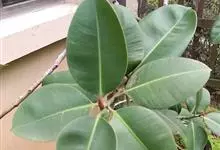印度榕,别名橡皮树,桑科榕属多年生常绿乔木植物。株高30米;树皮灰白色,平滑;叶厚革质,长圆形或椭圆形,叶柄粗,托叶膜质,深红色;榕果成对生于落叶枝叶腋,卵状长椭圆形,…全部>>