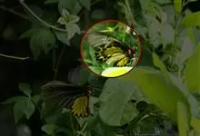 荧光裳凤蝶是凤蝶科裳凤蝶属的一种大型蝴蝶,该物种共有3个亚种。该蝶飞翔的时候姿态优美,前翅黑色,后翅金黄色和黑色交融的斑纹在阳光照射下金光灿灿,显得华贵美丽。幼虫寄主为多种马兜铃属的植物,取食马兜铃…全部>>