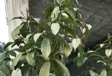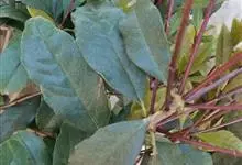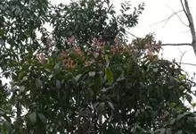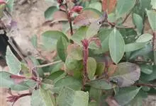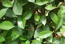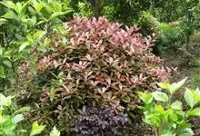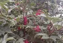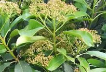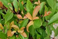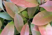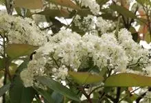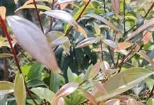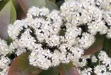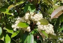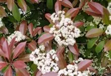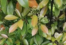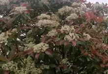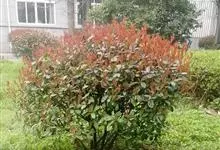 石楠 Kalkman),是蔷薇科石楠属的常绿乔木,高5~12米,株型紧凑,树冠圆球形。树枝为褐灰色;鳞片为褐色,没有毛;叶片革质,长椭圆至侧卵状椭圆形,有锯齿,新叶红色光亮。复伞房花序,白色小花,…全部>>