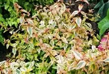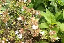 大花六道木,忍冬科六道木属半常绿矮生灌木。其幼枝为红褐色,有短柔毛;叶片倒卵形为墨绿色,有光泽;花粉钟形为白色;圆锥花序,开花繁茂;花期长,5~11月持续开花。…全部>>