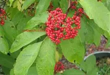 落叶灌木或小乔木。老枝有皮孔,幼枝无毛。奇数羽状复叶,对生,小叶3-11枚,揉碎有异味。圆锥状聚伞花序顶生。花小,白色至淡黄色。核果浆果状,黑紫色或红色。花期5-6月,…全部>>