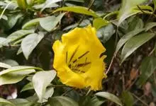 金杯藤 P.S. Green)是茄科、金杯藤属多年生常绿大型藤本。茎及枝条粗壮。叶片互生。长椭圆形。先端突尖。叶面有光泽。全株具有毒乳汁。花顶生,单朵或数朵,花苞棒槌状。从绿色转变为淡黄色。…全部>>