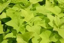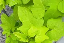 金叶番薯是旋花科番薯属的多年生草本植物。茎略呈蔓性;叶呈心形或不规则卵形,全缘或有分裂,叶色为黄绿色,嫩叶具绒毛;花单生或组成腋生聚伞花序或伞形至头状花序,花呈剌叭形;花期10-11月。…全部>>