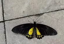 荧光裳凤蝶是凤蝶科裳凤蝶属的一种大型蝴蝶,该物种共有3个亚种。该蝶飞翔的时候姿态优美,前翅黑色,后翅金黄色和黑色交融的斑纹在阳光照射下金光灿灿,显得华贵美丽。幼虫寄主为多种马兜铃属的植物,取食马兜铃…全部>>