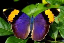 枯叶蛱蝶,又名木叶蝶、树叶蝶等,属于蛱蝶科。翅正面黑褐色,具深蓝色光泽,前翅顶角尖出,顶区有1枚小白点,中部有1条倾斜的橙色斑带,从前缘延伸至Cu室外缘,u室中部有1枚黑色圆斑,…全部>>