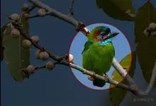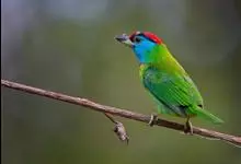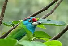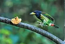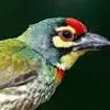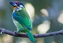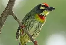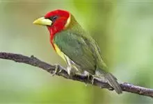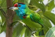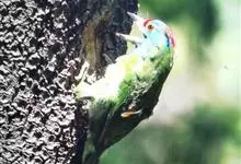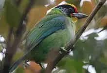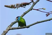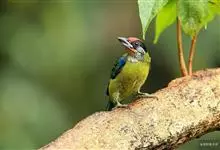 金喉拟啄木鸟,是须鴷科、拟啄木鸟属的鸟类。金喉拟啄木鸟为小型鸟类,体长19-24厘米。额深红色,头顶金黄色,后枕具一大块深红色斑,耳羽和头侧银灰色,上体草绿色,颏和上喉金黄色,下喉淡银灰色,…全部>>