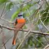 红胸啄花鸟:体重5-10克,体长60-92毫米。体形纤小。雄鸟上体呈辉亮的金属绿色;下体棕黄,胸部具一朱红色块斑,极易与其他啄花鸟区别。雌鸟上体呈橄榄绿,下体棕黄色。虹膜褐色,嘴褐黑色或角灰色,…全部>>