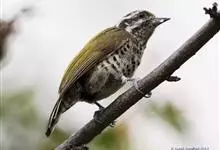 斑姬啄木鸟是鴷形目啄木鸟科姬啄木鸟属鸟类,又叫姬啄木鸟、小啄木鸟。体长9-10厘米。嘴尖而略粗壮,灰黑色;额棕色,向颈后逐渐过渡至橄榄绿色;眉纹白色,过眼纹黑褐色,其下有一白纹,…全部>>