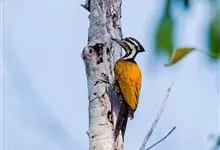 白腹黑啄木鸟,是啄木鸟科、黑啄木鸟属的中型鸟类,体长43-46厘米,头顶具长的红色羽冠,颚纹亦为红色,其余头、颈、胸和上体黑色,腰和腹白色,飞翔时白色腋羽和翅下覆羽亦明显可见。雌鸟头顶黑色,…全部>>