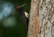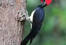 白腹黑啄木鸟,是啄木鸟科、黑啄木鸟属的中型鸟类,体长43-46厘米,头顶具长的红色羽冠,颚纹亦为红色,其余头、颈、胸和上体黑色,腰和腹白色,飞翔时白色腋羽和翅下覆羽亦明显可见。雌鸟头顶黑色,…全部>>
