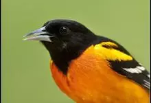 金黄鹂是中型鸣禽。体长24厘米。头全黄色。体羽鲜丽,主要由为黄和黑的颜色组合,雌鸟与幼鸟多具条纹。雄性成鸟眼先、翼及尾基部黑色,其余为鲜亮黄色。雌鸟较暗淡而多绿色。幼鸟偏绿色,下体具细密纵纹。虹膜红…全部>>