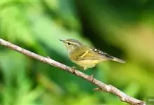金头穗鹛小型鸟类,体长10~11厘米,是一种黄色小鸟。头顶金黄色有黑色纵纹,眼先黑色,在头、颊和耳羽金黄色的衬托下亦甚醒目。上体橄榄黄色,下体亮黄色,腹和两胁沾绿。…全部>>