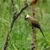 纹喉凤鹛:小型鸟类,体长13-16厘米。头顶和羽冠暗褐色或褐灰色,上体橄榄褐色,飞羽黑褐色,外侧次级飞羽表面橙黄色,构成一块纵形翼斑,极为醒目。颏、喉淡棕白色,具黑色纵纹,腹和尾下覆羽橙黄色。…全部>>