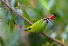 火尾绿鹛是莺科、绿鹛属小型鸟类,体长11-14厘米。上体绿色,头顶至枕具黑色鳞状斑,眼先和眼后黑色,眉纹黄绿色。两翅黑色具黄色和红色翅斑及白色端斑,极为醒目。中央一对尾羽绿色,外侧尾羽鲜红色。…全部>>