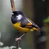 金胸雀鹛是莺科、雀鹛属小型鸟类,体长10-11厘米。头黑色,头顶中央有一道白色中央冠纹,颊和耳羽亦为白色,在黑色的头部极为醒目。上体深灰沾绿。两翅黑色,外侧飞羽有黄色外缘和白色端斑;尾凸状、黑色。…全部>>
