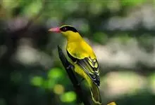 黑枕黄鹂又称黄莺、黄鹂、金衣公子等,是雀形目黄鹂科黄鹂属鸣禽。体长23~27厘米,嘴略下弯,粉色;雄鸟整体主要呈鲜明的黄色,黑色过眼纹在额和枕后相连,且在枕后较粗,形成一围绕头顶的黑色宽带;飞羽黑色,…全部>>