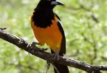 金黄鹂是中型鸣禽。体长24厘米。头全黄色。体羽鲜丽,主要由为黄和黑的颜色组合,雌鸟与幼鸟多具条纹。雄性成鸟眼先、翼及尾基部黑色,其余为鲜亮黄色。雌鸟较暗淡而多绿色。幼鸟偏绿色,下体具细密纵纹。虹膜红…全部>>