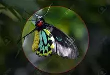 荧光裳凤蝶是凤蝶科裳凤蝶属的一种大型蝴蝶,该物种共有3个亚种。该蝶飞翔的时候姿态优美,前翅黑色,后翅金黄色和黑色交融的斑纹在阳光照射下金光灿灿,显得华贵美丽。幼虫寄主为多种马兜铃属的植物,取食马兜铃…全部>>