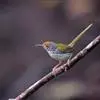 普通缝叶莺,是雀形目鹅科莺亚科缝叶莺属一种。体长10-14厘米,体重7-10克,雄鸟前额棕红,头顶至枕棕橄榄褐,上体橄榄绿染黄,飞羽及尾羽暗褐;繁殖期雄鸟的中央尾羽特形延长,下体淡皮黄白色。…全部>>