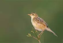金头扇尾莺体小而具褐色纵纹的莺。嘴细长,略向下弯;翼短,体型娇小,尾长。下体皮黄,喉近白,尾深褐,尾端皮黄。雌雄羽色相近,羽色单调。繁殖期雄鸟顶冠亮金色,腰褐色。雌鸟及非繁殖期雄鸟头顶密布黑色细纹,…全部>>