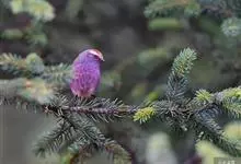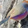 凤头雀莺:小型鸟类。体长9-10厘米,雄鸟呈毛茸茸的紫色和绛紫色,顶冠淡紫灰色,额及凤头白色,尾全蓝。雌鸟喉及上胸白,至臀部渐变成淡紫色,耳羽灰,…全部>>