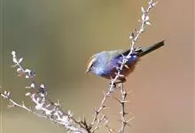 花彩雀莺:体长9-12厘米,是一种毛茸茸偏紫色的雀莺。顶冠棕色,眉纹白。尾长,羽毛松软。前额有一宽阔的眉纹淡黄色,头顶栗色或棕红色,有的具紫蓝色光泽。背灰色,腰和尾上覆羽辉紫蓝色,飞羽灰褐色。…全部>>