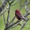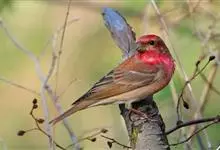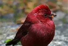 酒红朱雀小型鸟类,体长13~15厘米。雄鸟通体深红色,头部深朱红或棕红色,下背和腰玫瑰红色,眉纹粉红色而具丝绢光泽。两翅和尾黑褐或灰褐色、具暗红色狭缘,内侧两枚三级飞羽具淡粉红色先端。…全部>>