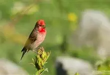红额金翅雀:共有14个亚种。小型鸟类,体长12-14厘米。额、脸颊和颏朱红色,眼先和眼周黑色,在淡色的头部极为醒目。上体灰褐或乌褐色,尾上覆羽白色,两翅和尾黑色,翅上有黄色斑。下体喉、胸灰褐或乌褐色…全部>>