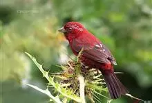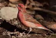 酒红朱雀小型鸟类,体长13~15厘米。雄鸟通体深红色,头部深朱红或棕红色,下背和腰玫瑰红色,眉纹粉红色而具丝绢光泽。两翅和尾黑褐或灰褐色、具暗红色狭缘,内侧两枚三级飞羽具淡粉红色先端。…全部>>
