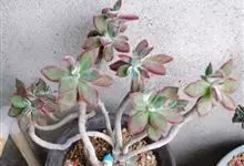 锦晃星是景天科、石莲花属多肉植物。多年生小灌木状多浆植物,灰绿色卵状倒披针形肥厚肉质叶轮状互生,全缘,椭圆尖头,长3-4厘米,宽2-2.5厘米,厚约1厘米,玲凉季节阳光下,叶端及上缘呈红色。…全部>>