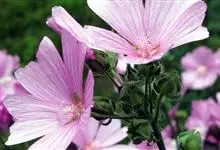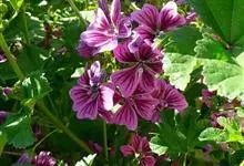 锦葵:二年生或多年生直立草本,高50-90厘米,分枝多,疏被粗毛。叶圆心形或肾形,具5-7圆齿状钝裂片,两面均无毛或仅脉上疏被短糙伏毛。花3-11朵簇生,小苞片3,长圆形疏被柔毛;花紫红色或白色,…全部>>