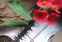 铁海棠为大戟科大戟属蔓生灌木植物;茎多分枝,具纵棱,呈旋转状;叶互生,通常集中于嫩枝上;每个花序基部边缘具微小的红色尖头;苞叶先端圆且具小尖头,无柄,上面鲜红色,下面淡红色;苞片丝状;子房光滑无毛,…全部>>