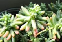 乙女心是景天科景天属的多肉植物,原产墨西哥。多年生亚灌木,茎叶肉质,株高5-30厘米。叶片簇生于茎顶,圆柱状,淡绿色或淡灰蓝色,叶先端具红色,叶长3~4厘米。花小,黄色。春秋为生长季,…全部>>