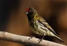 金额丝雀:为雀科丝雀属的鸟类。体重10-14克,体长109-131毫米。是一种体型较小的褐色斑驳的雀鸟。头近黑,额至顶冠有鲜红色块斑。雄雌同色,体羽在繁殖期更为亮丽。幼鸟似成鸟但头色较淡,…全部>>
