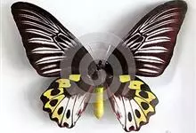 金裳凤蝶是凤蝶科、裳凤蝶属的动物。金裳凤蝶身体呈黑色,头、颈和胸侧有红毛,腹部有黑黄两色相间条纹,雄蝶前翅黑色,具黑天鹅绒光泽,各脉两侧灰白色,后翅金黄色,各室外缘有等腰三角形黑斑1枚,斑内侧有晕,…全部>>