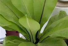巢蕨是铁角蕨科铁角蕨属的中型附生草本植物。植株高1-1.2米;根状茎直立,深棕色;叶簇生,叶柄呈浅禾秆色,叶片呈阔披针形,干后灰绿色,两面均无毛;孢子囊群呈线形,生于小脉的上侧;囊群盖呈线形,浅棕色。…全部>>