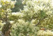 槐 Schott),豆科槐属的落叶乔木。树皮暗灰色,树冠球形,老时则呈扁球形或倒卵形。枝叶密生,羽状复叶。圆锥花序顶生,花蝶形,夏季开黄白色花,略具芳香。荚果肉质,念珠状不开裂,黄绿色,常悬垂树梢,…全部>>