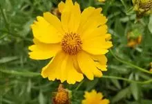 金鸡菊 S. F. Blake),菊科,金鸡菊属一年生或二年生草本植物,高30~60厘米,叶片羽状分裂,裂片圆卵形至长圆形,头状花序单生枝端,外层总苞片与内层近等长,舌状花黄色,基部紫褐色,状黑紫色。…全部>>