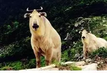 羚牛,偶蹄目牛科羚牛属哺乳动物,俗称扭角羚、野山牛、盘羊。其体形粗壮。尾短。吻鼻部隆起且裸露。前额隆起,毛短而蓬松。角基粗,由头顶长出后先向上升起,又突然翻转,靠近头部,复向外伸,然后又向后弯转,…全部>>