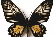 金裳凤蝶是凤蝶科、裳凤蝶属的动物。金裳凤蝶身体呈黑色,头、颈和胸侧有红毛,腹部有黑黄两色相间条纹,雄蝶前翅黑色,具黑天鹅绒光泽,各脉两侧灰白色,后翅金黄色,各室外缘有等腰三角形黑斑1枚,斑内侧有晕,…全部>>