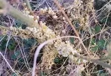 南方菟丝子,为旋花科、菟丝子属的一年生寄生草本。茎缠绕,金黄色,纤细,无叶。花序侧生,少花或多花簇生成小伞形或小团伞花序,总花序梗近无;苞片及小苞片均小,鳞片状;花梗稍粗壮;花萼杯状,基部连合,长圆…全部>>